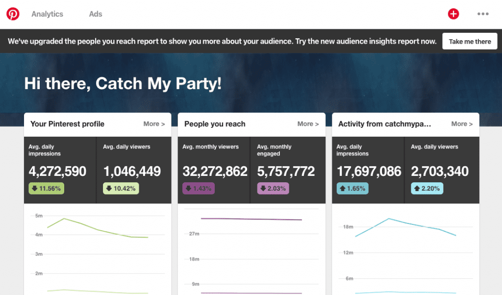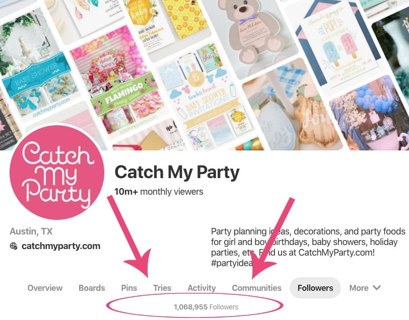 Here’s a screenshot of our Catch My Party Pinterest Page with our 1+ million followers