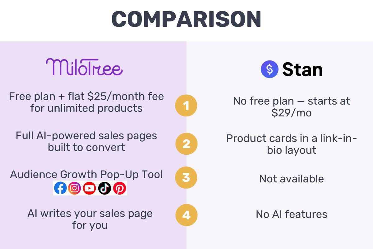 MiloTree vs. Stan Store: Quick Comparison